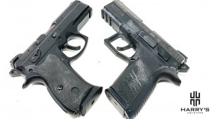 On the other hand the CZ is slick. Comparing the Glock 19 vs CZ P07 the frame texture is nearly identical but the Glock’s blocky uncomfortable ergonomics give you more to grab onto making it easier to get control of the gun.