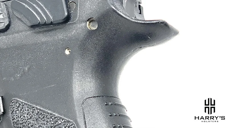 But if you really plan to run the gun hard in environments where things can get wet I would suggest adding some sort of grip enhancement like skateboard tape or having the grip stippled. The same texturing on the side panels is also located above the trigger guard on each side of the frame.