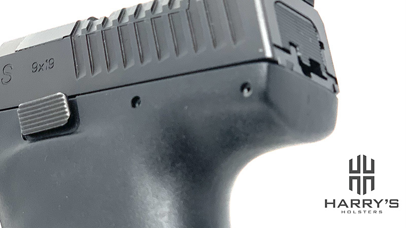 Texturing on a thumb pad area and above the trigger guard does add a nice little bit of balance to the gun. And the slide chamfers are a nice touch as well.