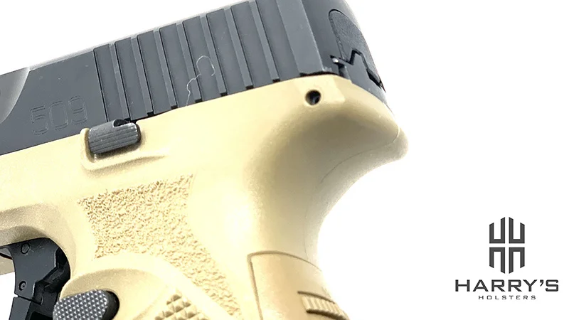 Texturing of the 509 is absolutely phenomenal when everything is taken into account. The front strap of the grip has rows of checkering. It gets more aggressive as it moves out towards the sides.