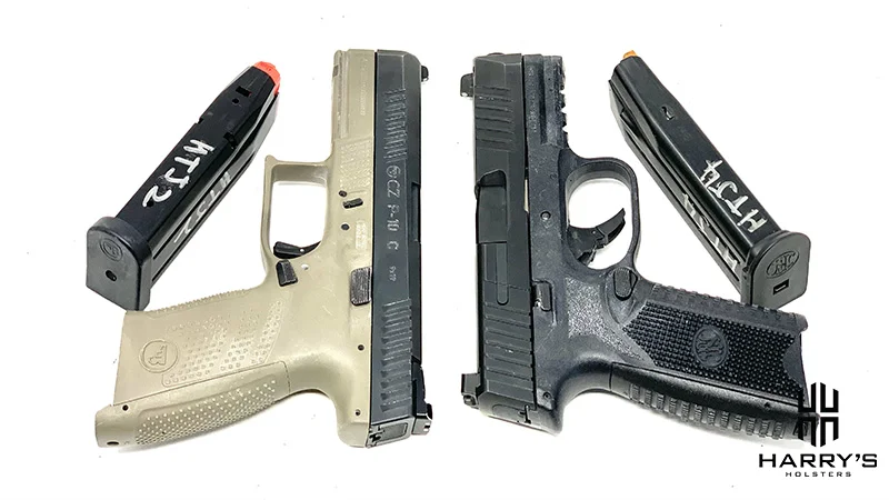 Both are duty-size handguns that can also fill the role of concealed carry. In other words, they’re larger than most standard concealed-carry options they’re still small enough to be comfortably carried and concealed. You can get 15 rounds in a CZ P10c magazine and 17 rounds in an FN 509 flush-fit magazine.