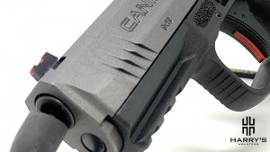 The downside of this gun is it doesn’t come with optics mounting plates and the sights aren’t high enough to co-witness with most red dot optics. You’ll have to purchase both a mounting plate and suppressor height sights run a dot on your VP9 2020.