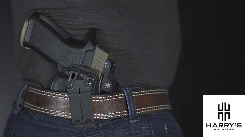 Another feature you’ll want to look for comfort-wise is something with a rounded muzzle. That’s so the gun is not poking into your butt. Instead has a nice chamfered or filleted angle on the holster that can lay gently against your rear end.