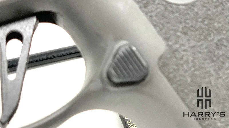 You can reverse the magazine release to the other side of the tungsten frame if you’re left-handed. I have average-sized hands for a 6’ tall male and I have to slightly break my grip to drop the magazine so keep that in might if you have really small hands.